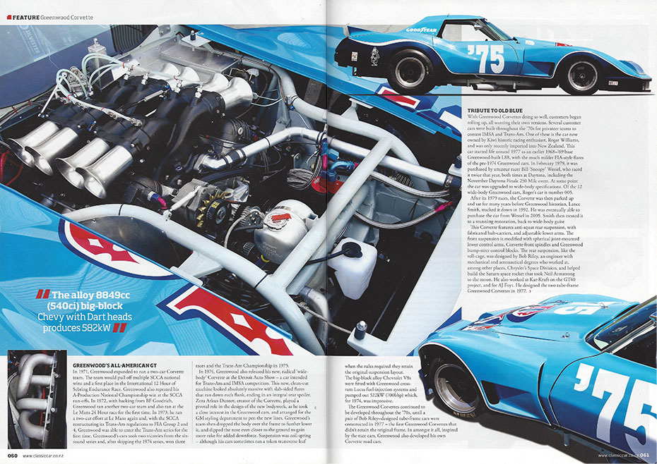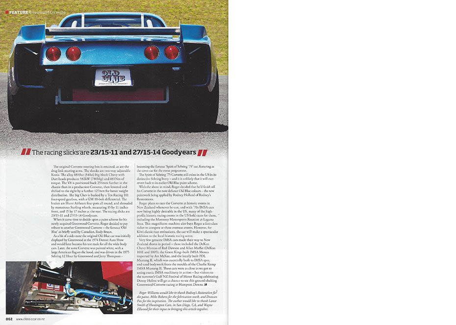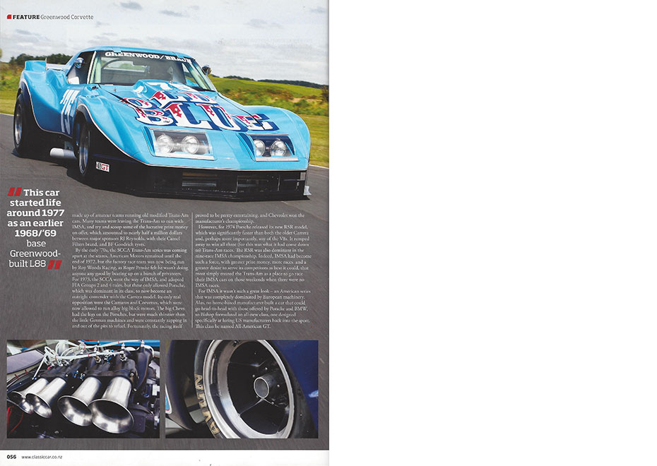 Roger plans to race the Corvette at historic events in New Zealand whenever he can, and with '70s IMSA cars now being highly desirable in the US, many of the high-profile historic racing events in the US hold races for them, including the Monterey Motorsports Reunion at Laguna Seca. This magnificent machine also buys Roger a first-clas ticket to compete at these overseas events. However, for Kiwi classic race enthusiasts, the car will make a spectacular addition to the local historic racing scene.