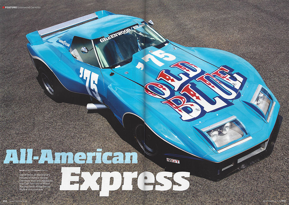 As a bit of a side-note the original Old Blue car was initially displayed by Greenwood at the 1974 Detroit Auto Show and would later become his test mule for all the wide-body cars. Later, the same Corvette was painted white, with a large American flag on the hood, and was driven in the 1975 Sebring 12 Hour by Greenwood and Jerry Thompson -- becoming the famous 'Spirit of Sebring '75' car, featuring as the cover car for the event programme.